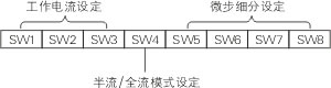 SW4定義:用戶可通過(guò)SW4來(lái)設(shè)定驅(qū)動(dòng)器的自動(dòng)半流功能。off表示靜態(tài)電流設(shè)為動(dòng)態(tài)電流的一半,on表示靜態(tài)電流與動(dòng)態(tài)電流相同。一般用途中應(yīng)將 SW4 設(shè)成 off,使得電機(jī)和驅(qū)動(dòng)器的發(fā)熱減少,可靠性提高。脈沖串停止后約0.4秒左右電流自動(dòng)減至一半左右(實(shí)際值的60%),發(fā)熱量理論上減至36%。